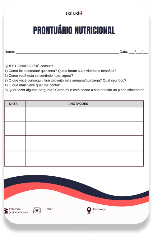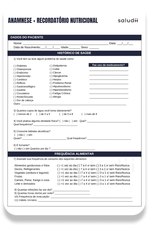 Crie o seu próprio modelo de anamnese, histórico e condutas, ou utilize diversos templates já prontos para facilitar o seu dia a dia;Dados antropométricos