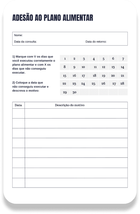 - Salve e registre padrões de refeições já prontos e criadas por você para facilitar a criação de mais planos alimentares